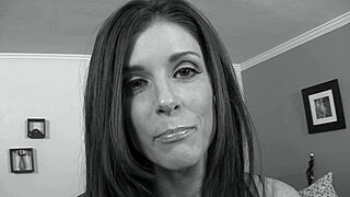 Stepson teases brunette stepmom with big tits and brown eyes before rough doggystyle fucking and cowgirl riding in taboo wet sex.
