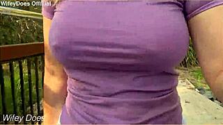 Australian wifey flashes her huge natural tits outdoors for all to see in homemade video.