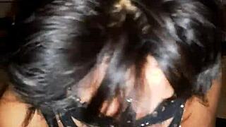 Sexy Black-Haired Wife Sucks Masked Stranger's Cock At Swinger Party Facial