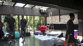 Френска курва поема двойно проникване в луд interracial гангбанг оргия