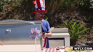 stepfamily 3some fucks with big cocks at july 4th bbq