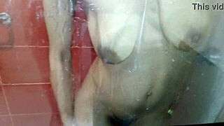 I'm spying on the milf masturbating in the shower.