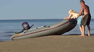 at the beach boss fingers my ass fucks pussy cums inside cuck hubby watches