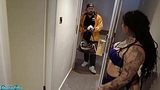 Pizza Delivery Guy Gives Brutal Rough Sex with Cumshot to Fat Lingerie Milf