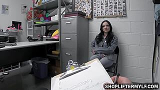security officer catches hot milf leia rae shoplifting at the store
