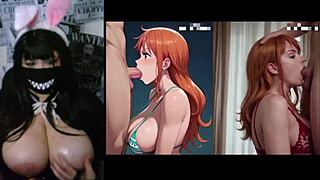 Gangbang with this wild piranha chick, all covered in cum! 😜