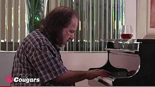 Busty latin milf jennifer dominic rides young dude cowgirl style.