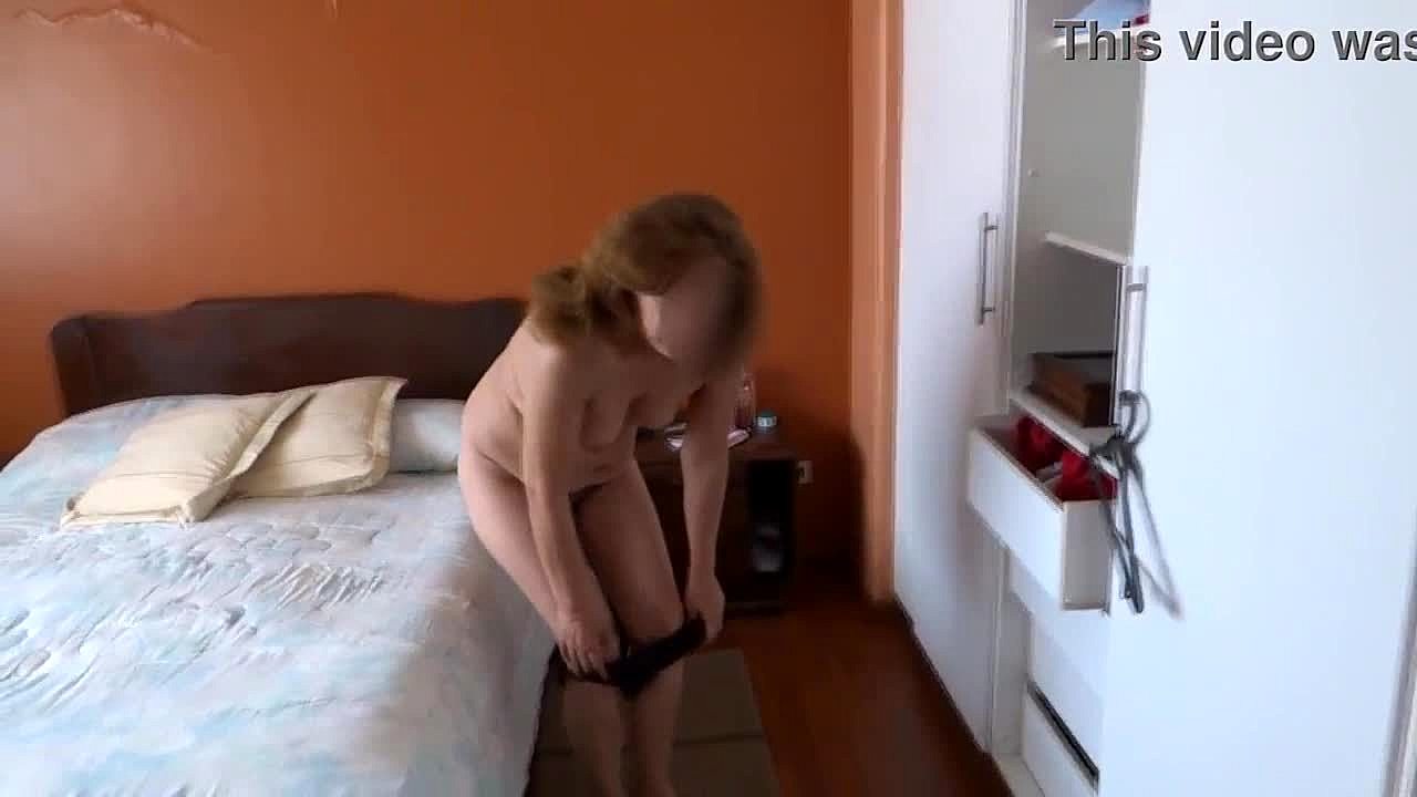 showing off in erotic lingerie as stepson records and jerks