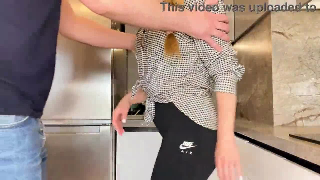 I feel so horny as housewife paying salary to plumber with my big natural tits and tight pussy. He fucks me hard in kitchen.