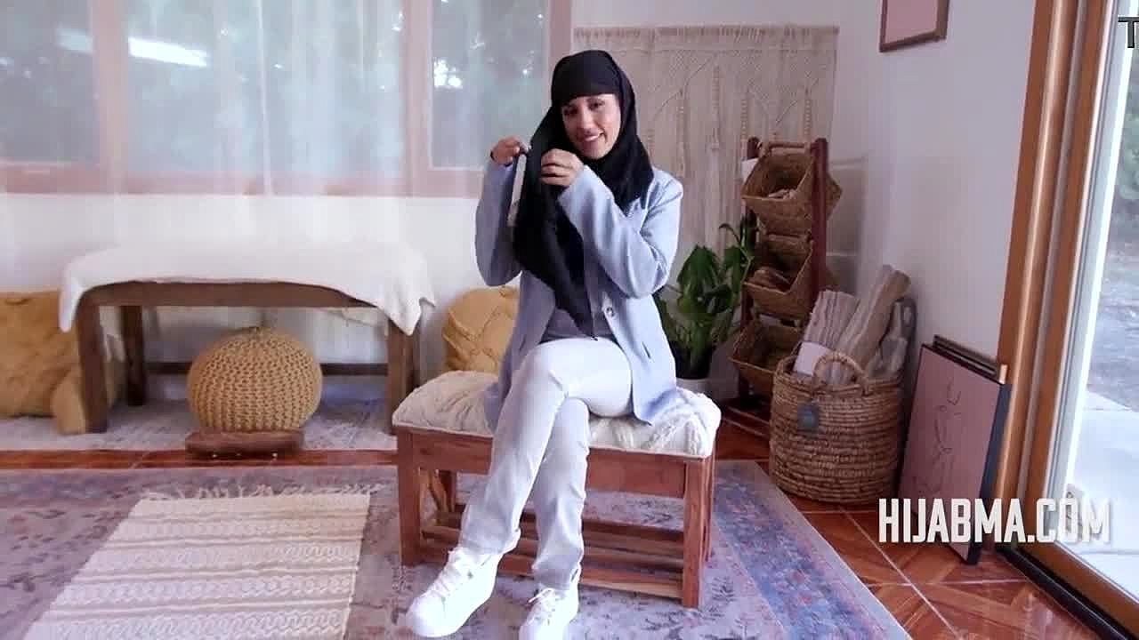 A sexy lesbian seduces an Arab lady in hijab using a double sided dildo, leading to intense tribbing and orgasm