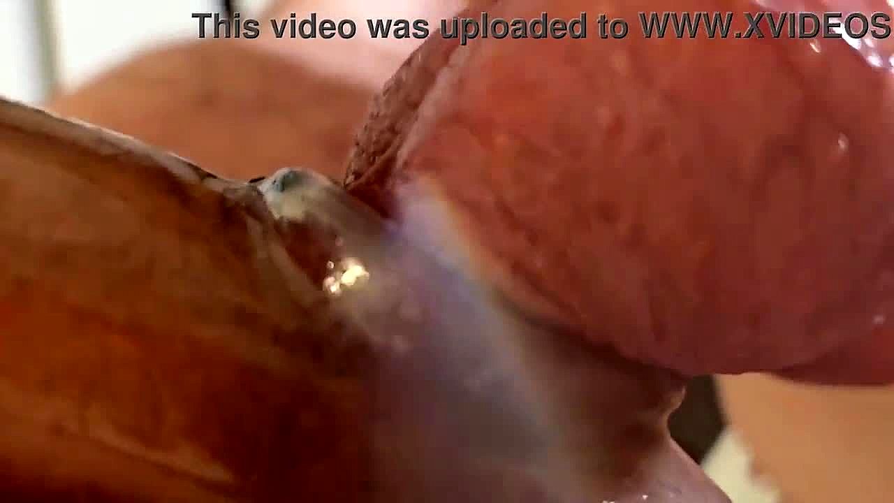 She rims his big cock in pov with handjob until cumshot covers her tanned body